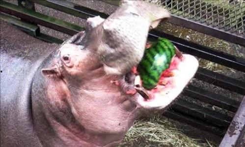 河马是非洲大陆上的一种大型哺乳动物,它们以水生植物、果实和树叶为食。在炎炎夏日,河马们会寻找一些清凉解暑的食物,而西瓜就是它们的最爱。看着河马大口大口地啃着西瓜,是不是觉得它们很享受呢?